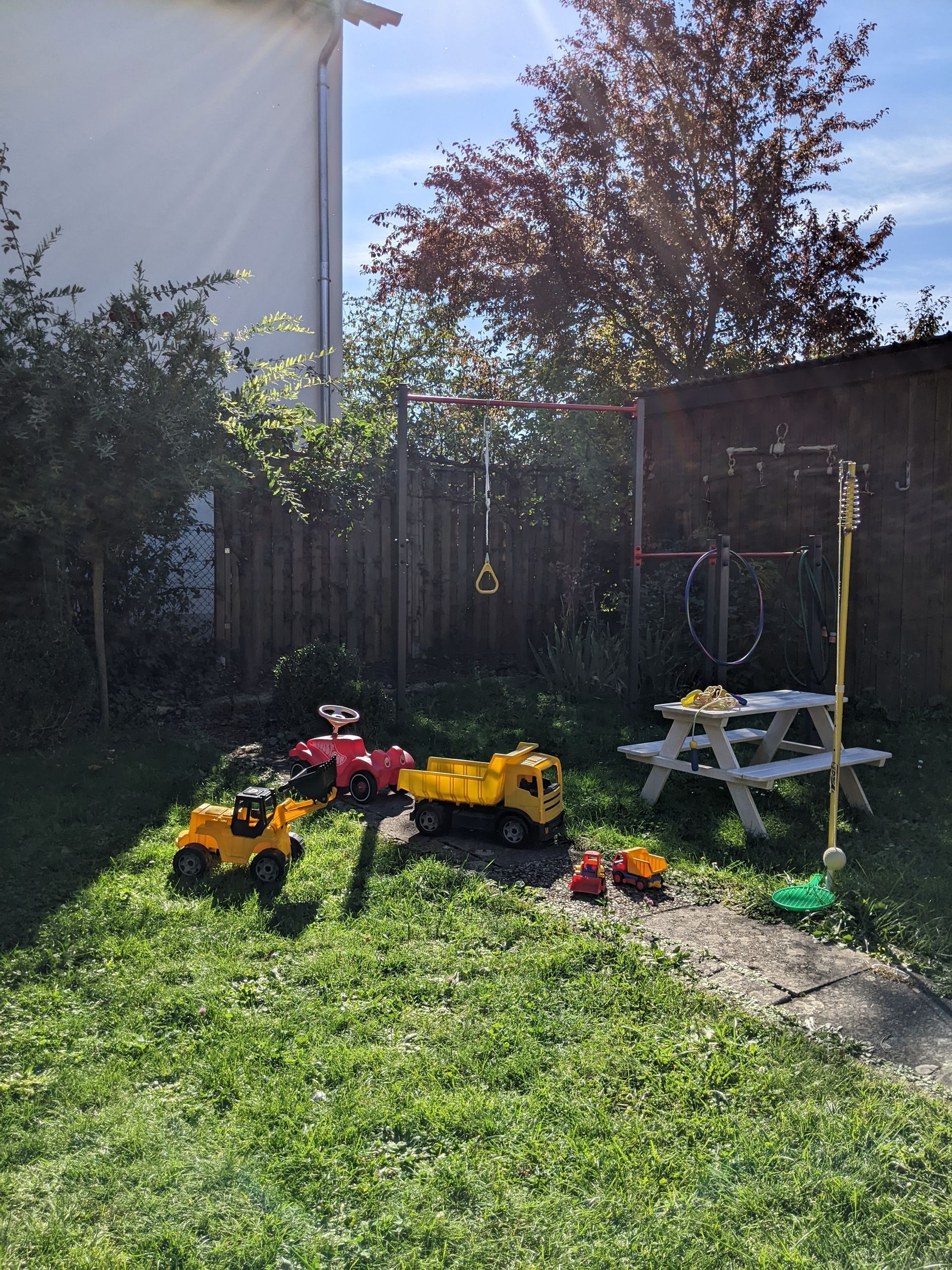 Wir nutzen jede Gelegenheit für kleine Ausflüge nach draußen. In geeignete Kleidung eingepackt geht es fast täglich in den Garten, oder wir erkunden mit dem 4-er Buggy die Umgebung, wobei sich müde Mäuse gerne mal ein Nickerchen gönnen