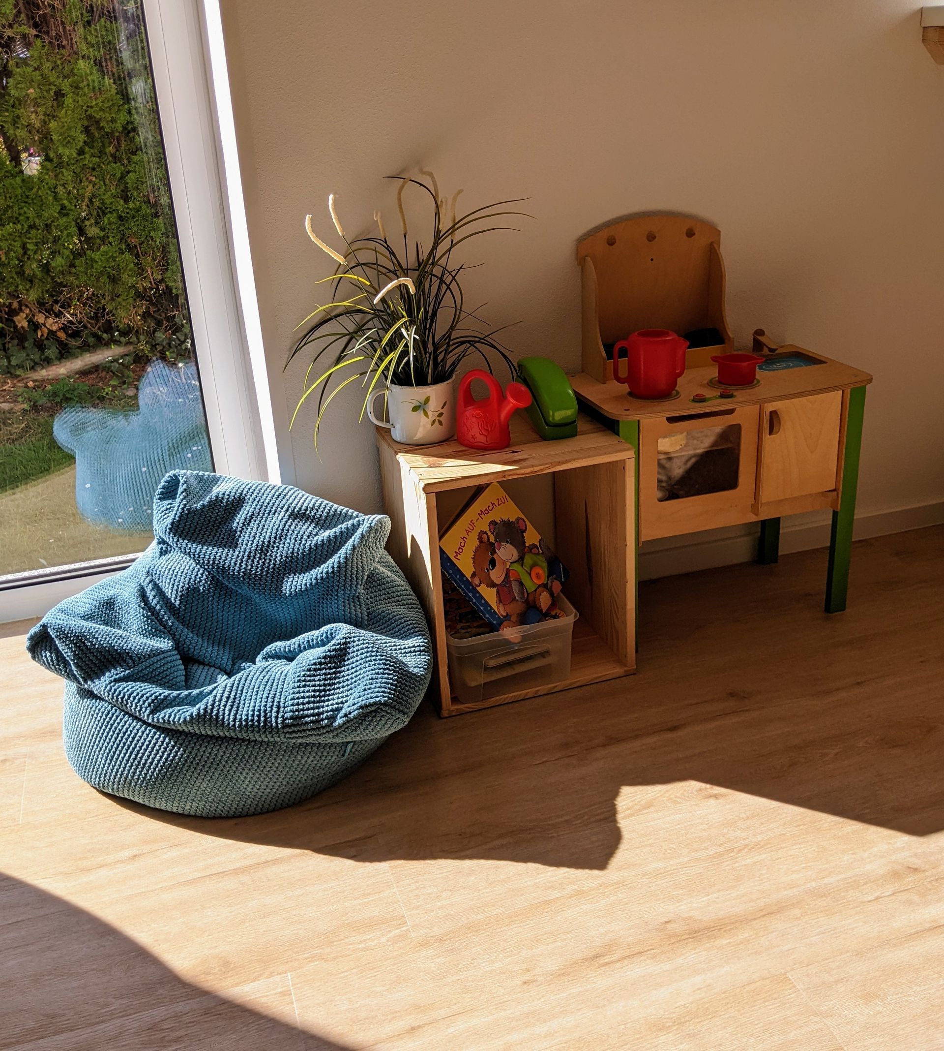 Hier ist sehr viel Platz! Die Kinder können bei mir toben und rennen, sich aber auch zurückziehen, einkuscheln und beobachten. Im Rahmen meiner langjährigen Zusammenarbeit mit dem Landratsamt bilde ich mich fortwährend weiter und kann die Kinder somit fundiert in ihrer Entwicklung unterstützen.In der Regel beginnt die Eingewöhnung mit dem ersten Geburtstag. Die Kleinen verbringen dann 3 bis 4 Vormittage pro Woche in der Mausestube. In zartem Alter bauen Kinder schnell eine Bindung auf, sodass sie sich nach kurzer Zeit wie zu Hause fühlen. Der tägliche Morgenkreis begeistert. Wir besprechen was die Kinder so bewegt.Es wird getanzt, gesungen und gelacht. Ich integriere gezielt wechselnde Angebote zur Förderung der Sprachbildung. Wir üben spielerisch und altersgerecht Feinmotorik und Grobmotorik, sowie Merkfähigkeit und Sozialkompetenz.Mit und an ihren Kameraden erfahren die Kleinen in der Mausestube erste gesellschaftliche Werte. Im September nach dem dritten Geburtstag wechseln die Kinder in den Kindergarten.
